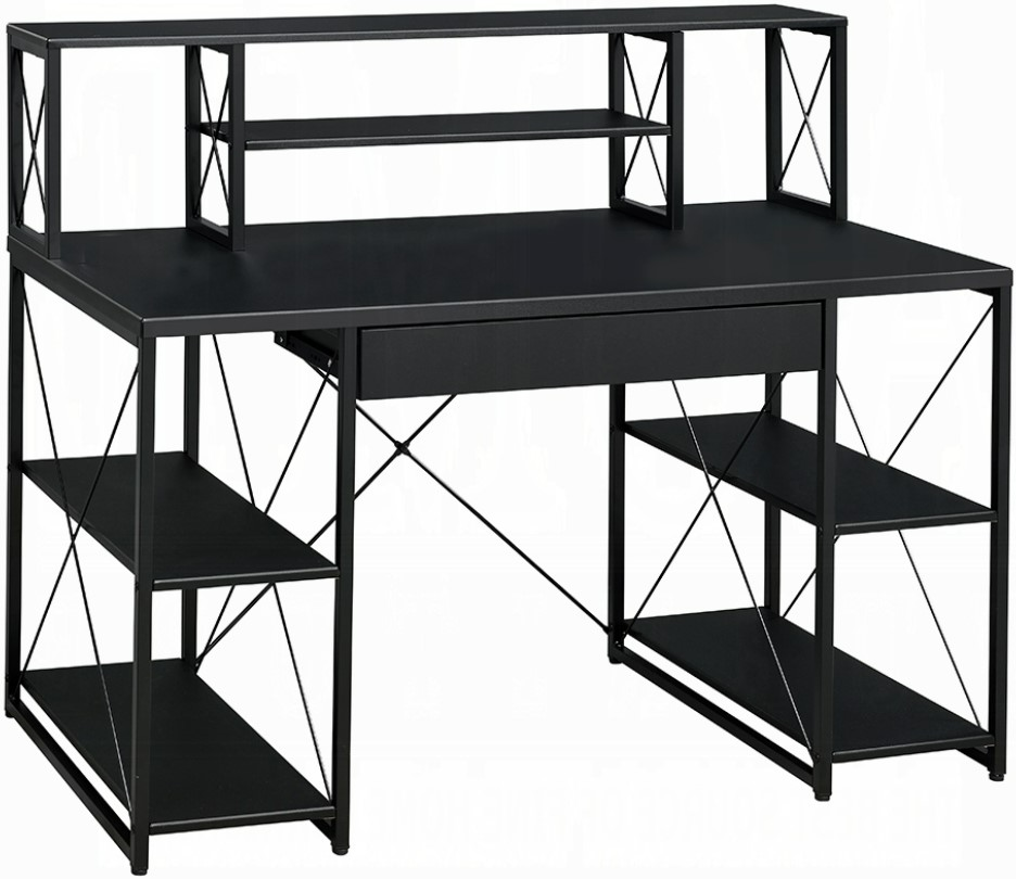 Specifically designed for all purpose, this Amiel music recording studio desk is suitable for study room, bedroom, living room or home office. Expertly crafted with selected veneers, manufactured wood, and metal tube, this piece has open shelving, hutch and drawer to provide ample space to store office necessities and documents.Read More