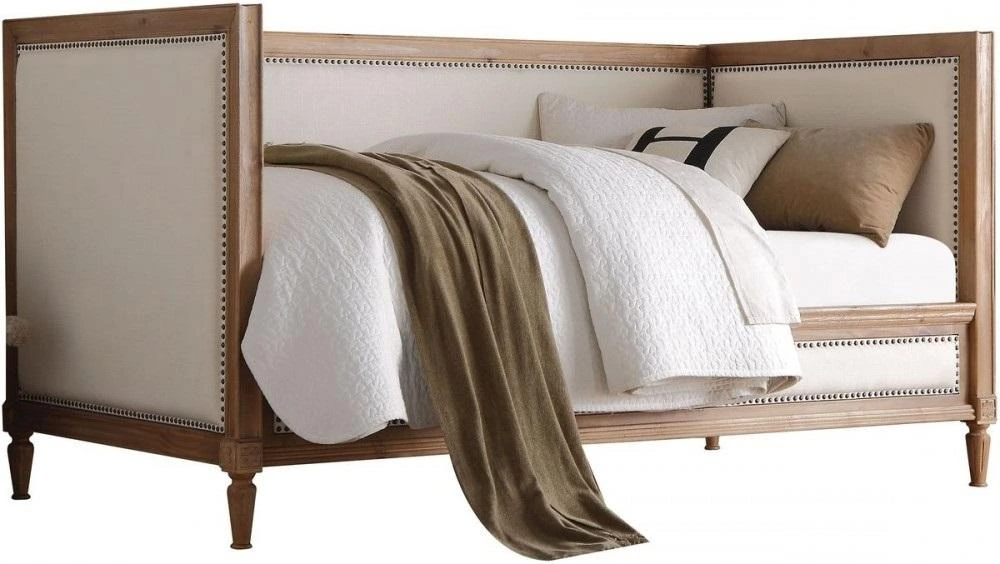 The Charlton daybed will add a beautiful addition to you classic living room, family room, or bedroom. The daybed offers a rustic design that is framed by salvage oak finish and upholstered by cream linen accented by nailhead trim.Read More
