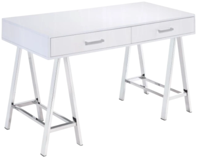 Simple, bold, and appealing, the Coleen Writing Desk will give your workplace a distinct look with contemporary style. The high gloss table top on trendy cross-base legs gives the desk a gorgeous and lustrous look. It has two storage drawers for your office supplies.Read More