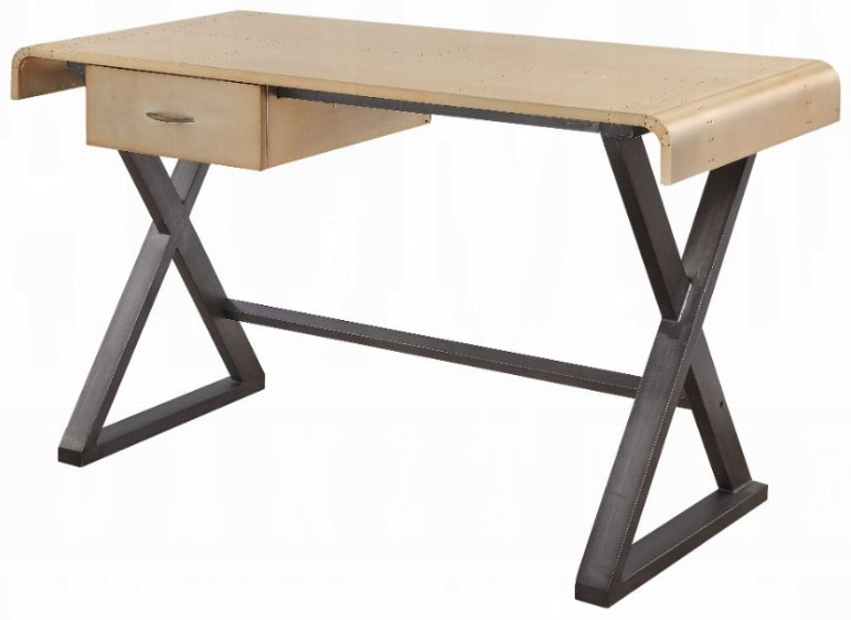 Add an industrial style and a pop of color to your decor with the Danton office desk. You'll love the sleek look, and durable longevity of this piece made with gold aluminum top supported by metal legs in a stylish X-frame. Featuring a pullout drawer to organize your office essentials, boosting your productivity.Read More