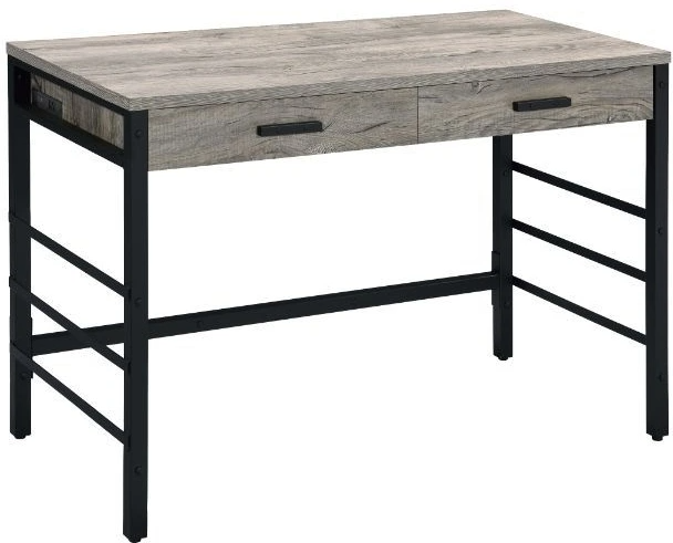 Explore industrial chic and rustic allure in the Disho Writing Desk. It has a ladder-style metal base with clean lines that work well in any contemporary setting. The light weathered oak finish on the tabletop showcases a beautiful wooden texture.Read More