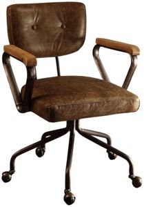 Our durable Hallie office chair gets its industrial look from oversized button tufted back and vintage top grain leather. The 5-star swivel base fitted with casters, it keeps you moving from one task to the next.Read More