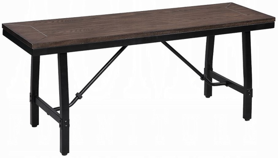 The industrial chic Mariatu wood and metal bench has a vintage style to enhance any space. The design aesthetic of this handcrafted bench includes a metal frame in a black finish. A rectangular wood top in an oak wood finish contrasts nicely.Read More