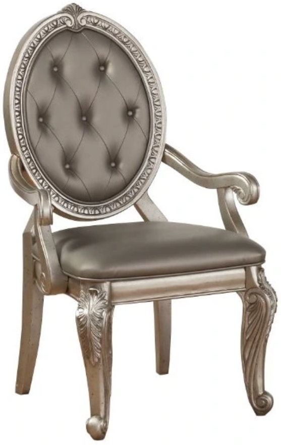 The Northville collection features dining options to choose from. The collection has gold hues and bright details. Side chair has oval button tufted backrest. Wooden scrolled apron seat with raised molding trim. Wooden Queen Anne legs.Read More