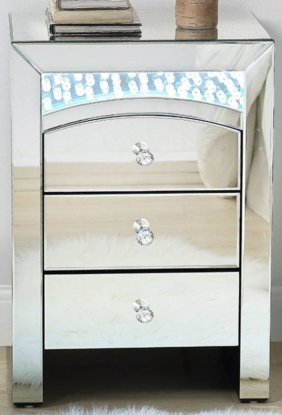| Nightstand Features | Glass-Top, Mirrored Look |
