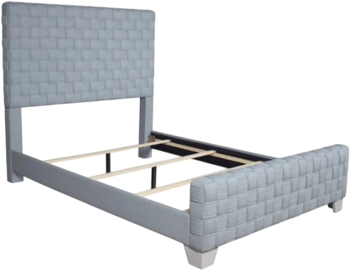 Unique and bold are used to describe the Saree bed. This distinctive fully upholstered and padded bed features a bold woven headboard and footboard. The light teal chenille fabric pops against the gray finish legs.Read More