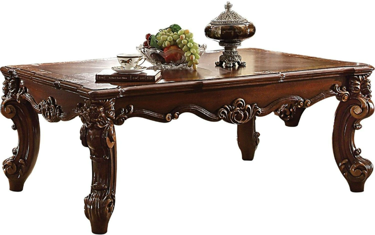 This knockdown Vendome II Coffee Table in cherry finish features an elegant design with a scrolled decor trim on the top apron and oversized scrolled polyresin legs. With no shelf or drawer, it emphasizes decorative charm and simplicity, making it a standout piece for any space.Read More