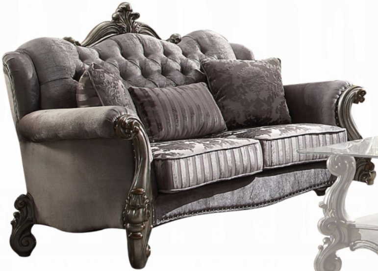 The Versailles Loveseat with antique platinum finish will create you an elegant, warm and traditional taste in your living room. This sofa reflects highly decorative base with scrolled feet, and the upholstered seats with the deep button tufted and nailhead trim accents.Read More