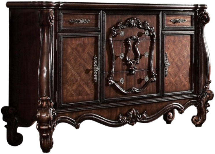The Versailles dresser is the perfect accent to create the style of royalty your bedroom has been needing. This dresser crafted in wood with cherry oak finish was inspired by old European design with brown copper metal hardware and intricate wood carvings on the front of the five drawers.Read More