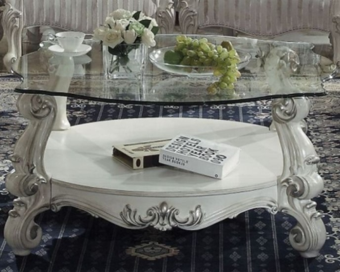 This coffee table is part of the Versailles collection, which includes complementary pieces like end tables, sofa tables, and display cabinets, all featuring the same intricate design and bone white finish.Read More