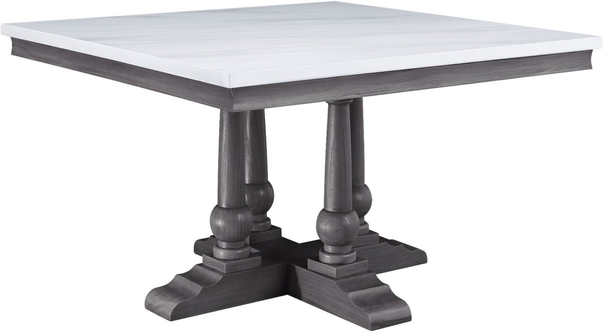 Taking on a classic-inspired architecture design, the dining table has a pedestal base which gives its tabletop both sturdy and elegant support. The square tabletop in white artificial marble highlights its clean lines and complements the gray oak finish on the wooden base perfectly.Read More