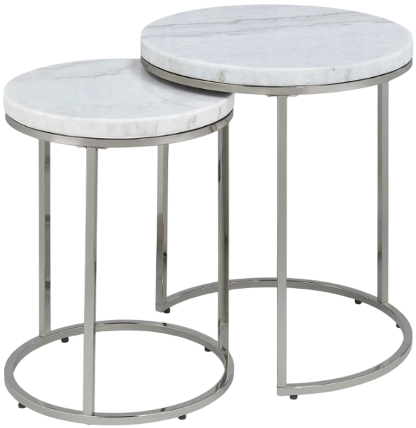 The Zaidee nesting table set features elegant marble tops paired with a sleek nickel base for refined functionality. Its versatile nesting design saves space while offering extra surface area for décor, drinks, or essentials. Durable and stylish, this set elevates living areas with appeal and practical elegance.Read More