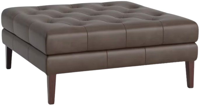 Webbed seating construction means you can comfortably settle your feet or a decorative tray, or even use it as a seat. A tufted top and tall, tapered wood legs in a walnut finish give it a clean look. Choose your leather from a range of possibilities.