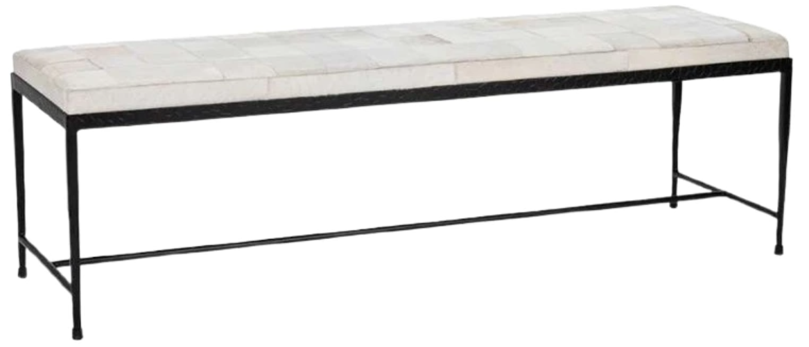 The Achen bench is a chic blend of contrasts. The textured hammered iron frame compliments the organic upholstered hide seats. Plush corners balance the tapered legs. The combination is a beautifully casual design. Available in Blonde, Ivory and Sparrow Gray.Read More