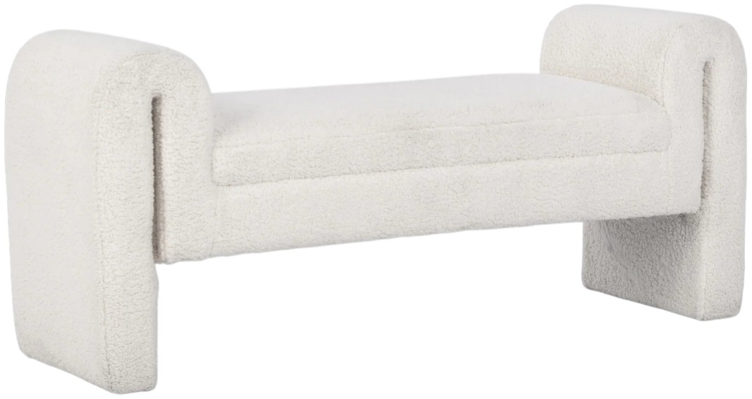 Perfect for bedrooms, entryways, or living rooms, this polyester and wood bench offers a harmonious blend of texture, comfort, and contemporary design, an artful accent for any space.