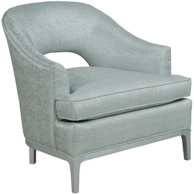 Add an elegant touch to your living room with the Pelle Provisions Jamie Lounge Chair. This elegant contemporary chair features a barrel-shaped back with an opening at the seat level. Wood outlines the base of the chair and tailored welting adds sculpted shaping. The slim simple arm shape flows from the back.Read More