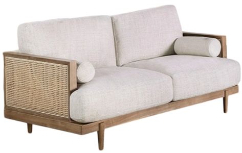 This sofa set harmoniously combines retro and mid-century modern aesthetics, enhancing any sophisticated home decor. Plush seat cushions and loose back pillows soften the straight lines and blocky construction. Natural elements like ash wood trims and woven rattan panels add organic flair, complemented by beige fabric for warmth.Read More