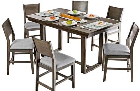 Perfect for casual family dinners or game nights, this contemporary style counter height set provides the ultimate cozy atmosphere. The soothing gray finish is complimented with light gray fabric upholstery for a classic look. A center beam provides extra support and added charm to blend style and functionality into one beautiful piece.