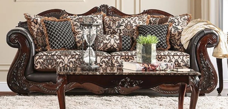Visitors will wonder if they wandered into a palace when they enter and find this ornate piece awaiting them. An elaborate wooden trim decorates the base and front of the rolled armrests and continues the frame to accentuate the top of the backrest.Read More