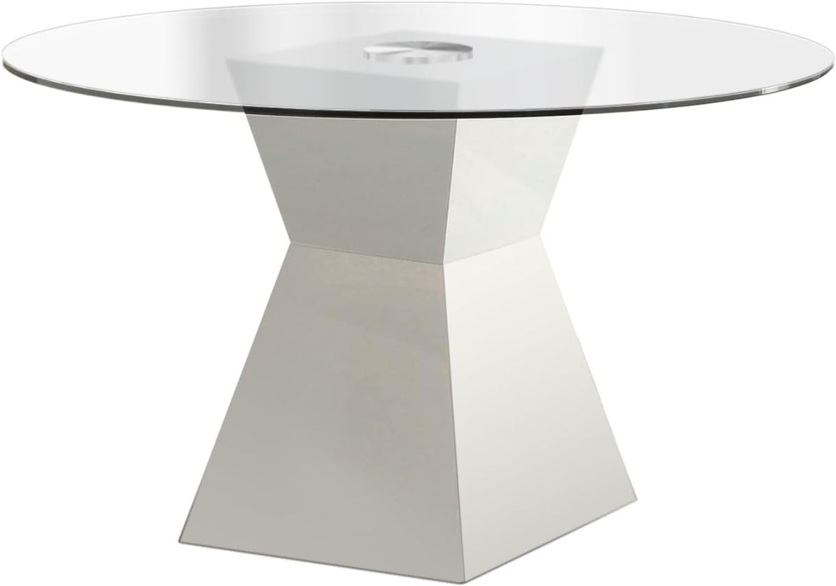 Brighten up any dining room with this contemporary round glass dining set. The table sits on a single modern base. The chairs are padded and upholstered in leatherette and chrome legs.Read More