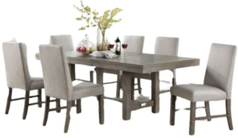 Add a touch of rustic elegance to your dining room with this standout collection. Crisp and clean lines help keep the focus on the visible wood grain on the large table top, while the trestle base is shout out to the ever-growing barn-style trend. To seat more in social occasions, simply install the 18-inch leaf.Read More