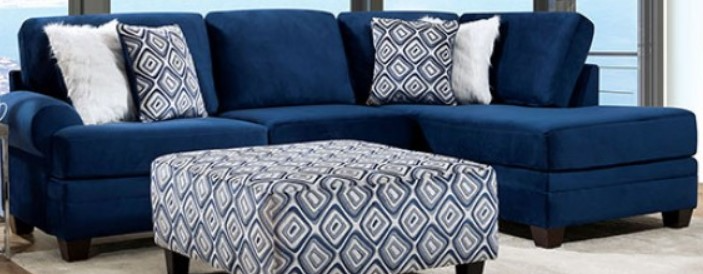 Introduce bold color and contemporary elements to your living room with this geometrically-inspired group. This mid-sized sectional offers relaxed rounded arms, super plush microfiber fabric, and artistic white and blue throw pillows to elevate the visual impact of your room along with the comfort it brings.Read More
