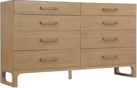 The Banyon Bay dresser offers ample storage and modern design. Made from white oak solids and oak veneers, it is finished in a light desert oak with wire-brushing and cerusing for added texture. The brushed brass stainless steel bar hardware adds a contemporary touch.Read More