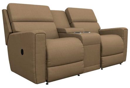 Take command of relaxation and convenience on the Apollo reclining loveseat with console. Padded track arms add a modern boost. Tall, cozy bucket chaise seats recline to optimal comfort. And the console keeps snacks, drinks and remotes under control.Read More