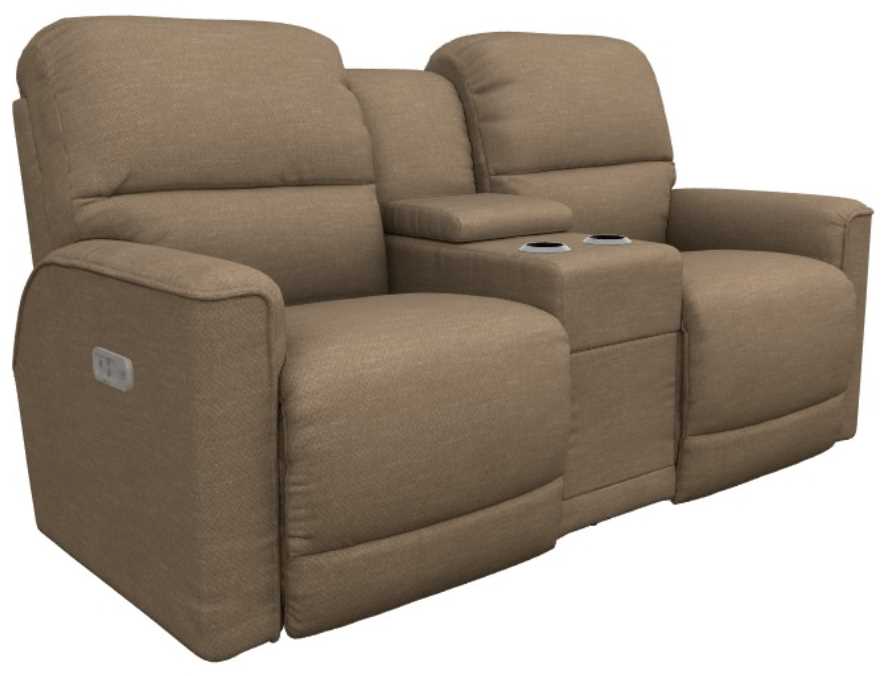 The La-Z-Boy® Cade power reclining loveseat with headrest and console offers modern comfort and convenience. Upholstered in durable fabric, it features dual power recliners, plush cushions, and adjustable headrests for personalized support. A center console with storage and cup holders adds functionality, making it a stylish, versatile addition to any living space.Read More