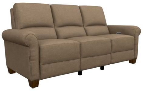 The Clybourn power reclining sofa with headrest has classic charm with sophisticated cigar arms, chic welt trim and wood legs. Just use the inner armrest power controls to adjust the backs, legrests and headrests for luxurious zero-gravity support.Read More