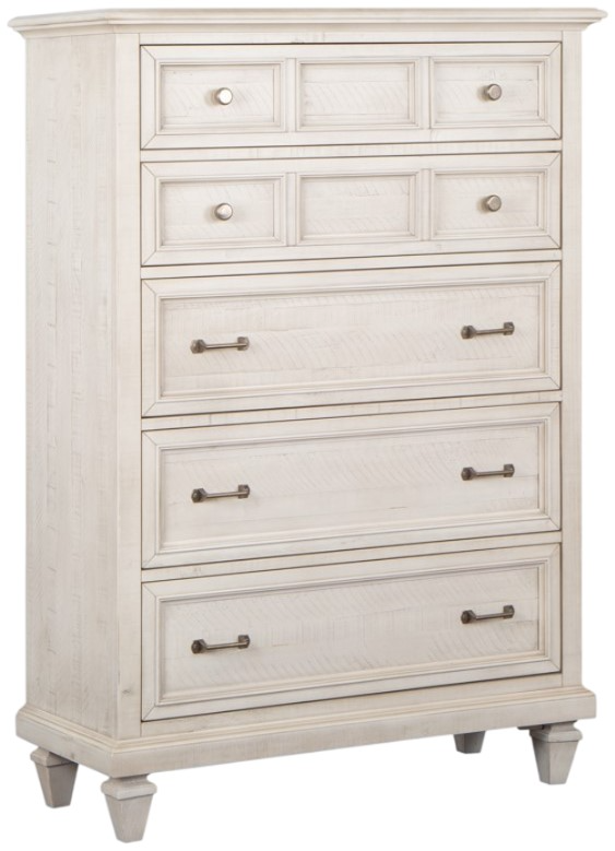 Inspired by the architecture and landscape of California wine country, the Newport bedroom collection exudes the ambience of laid-back luxury. Crafted of high-low pine and pine solids, the soft alabaster finish and brushed pewter hardware mix effortlessly with graceful turned legs and designer details to create a look that is bold yet inviting.Read More
