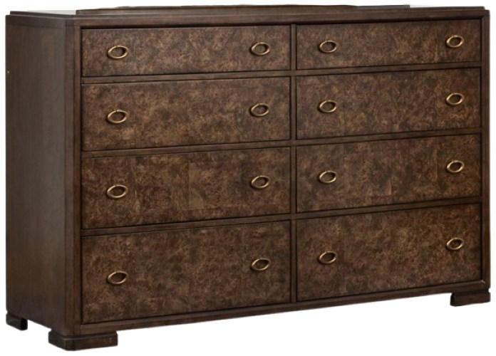 A deep, rich espresso finish accentuates the beauty of the collection’s mappa burl and birch veneers while antique brass hardware lends another level of luxury. Ideal for purveyors of fine design, the Rowan collection displays a uniquely expressive visual appeal that’s hard to take your eyes off.