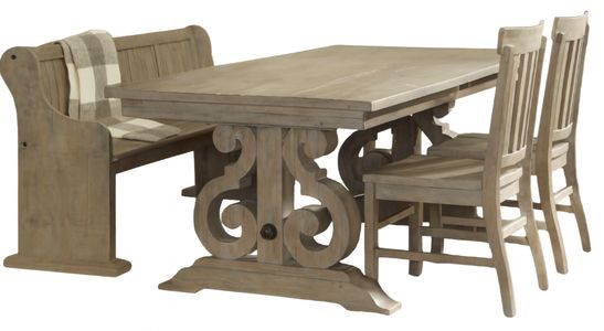 Set includes Dining Table, Bench and 2 Side Chairs