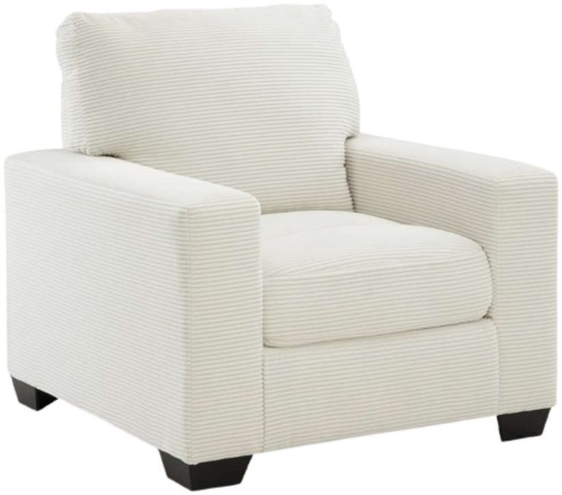 The crisp neutral hue and striking design details of this chair create a living room that expertly reflects your modern taste. For irresistibly cool textural appeal, the ultra-soft fabric is enhanced by a small-scale corded look. With a clean-lined silhouette complete with track arms.Read More