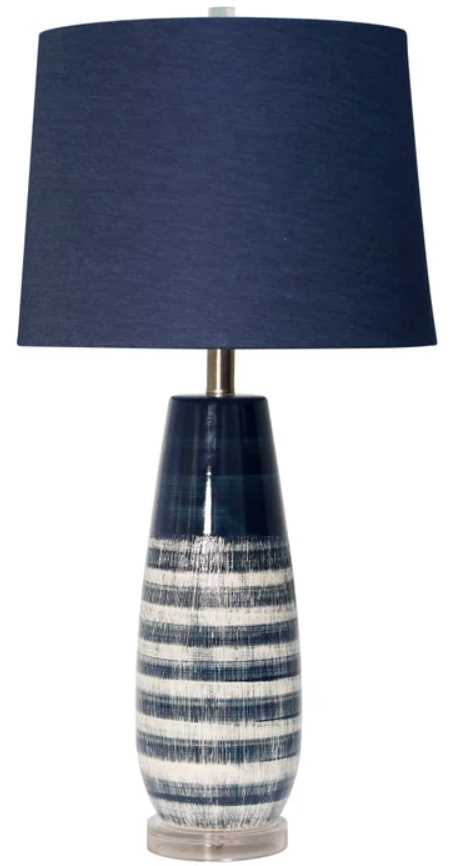 Elevate your living room design with this table lamp from Stylecraft. Shown in a blue color finish with a clear acrylic base. Make a bold statement by incorporating this stunning lamp into your home.Read More