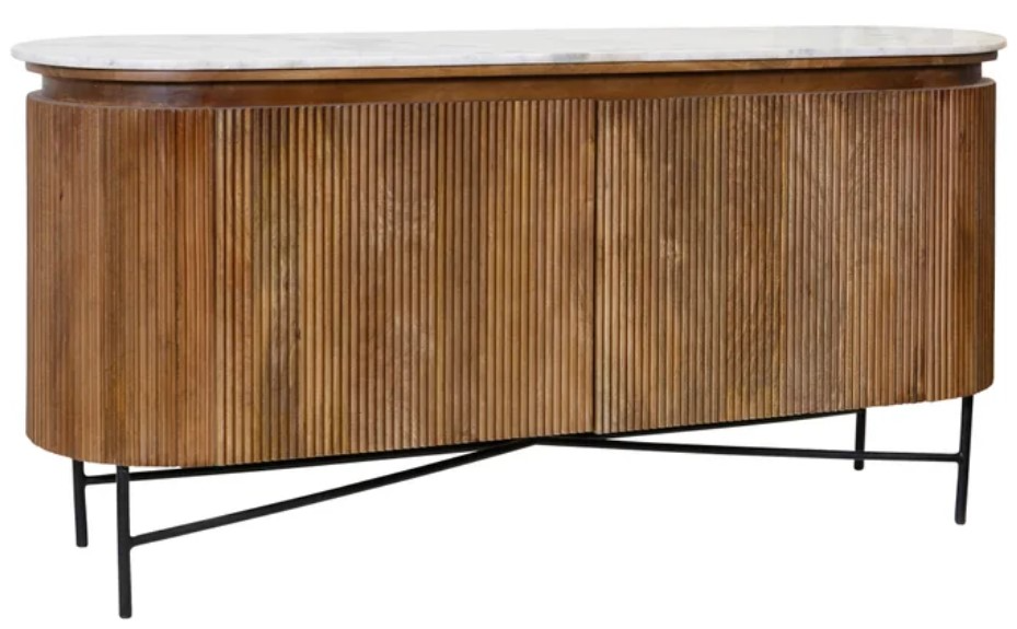Elevate your space with the Natural Cedar Marble Top Racetrack Sideboard. Crafted with a stunning marble top and a racetrack-shaped silhouette, this sideboard exudes timeless elegance. The natural cedar finish adds warmth, while the ample storage space makes it both stylish and functional. Perfect for adding sophistication to your dining or living area.Read More