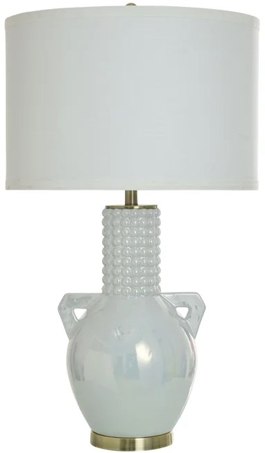 The Norman Wyatt Home Angel Pearls White Table Lamp exudes elegance with its pearlescent white finish and delicate design. This sophisticated lamp adds a touch of grace to any room, providing soft, ambient lighting. Perfect for bedside tables or living areas, it enhances decor with its refined, timeless charm.Read More