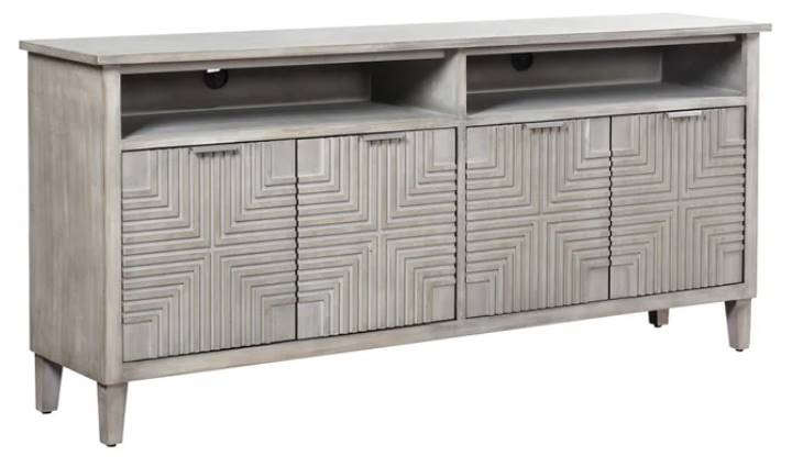 Elevate your dining room design with this Quadrant credenza from Stylecraft. Shown in a brushed gray wood finish. Make a bold statement by incorporating this stunning furniture into your home.Read More