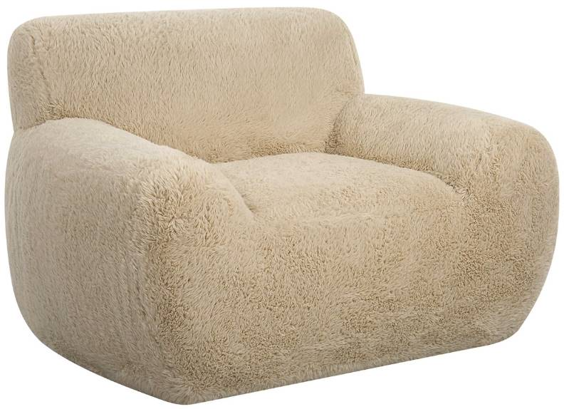 The definition of a cozy place to rest, the caramel toned long-haired faux sheepskin creates rich textural depth evoking relaxed luxury, with bold rounded forms adding natural comfort. Seat height is 18".Read More