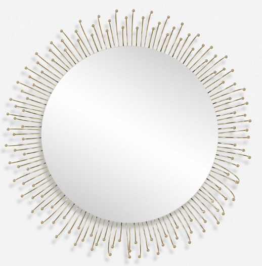 Displaying an elevated contemporary feel, this round mirror creates a floral motif that's finished in an elegant plated gold, surrounding a floating polished edge mirror and a great fit into your house.Read More