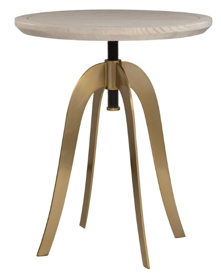 Striking and functional Alice's white washed oak veneer top can be easily adjusted to different heights, from 20" to 26". Accented by four striking brass plated stainless steel legs this piece blends contemporary aesthetics with practicality.Read More