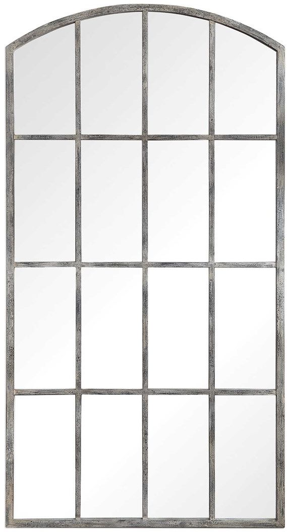 Contemporary and French country styles merge in this arched mirror. Reminiscent of a large window, this piece features a hand forged iron construction with an aged rust gray finish that has been distressed and covered in an off white wash.Read More