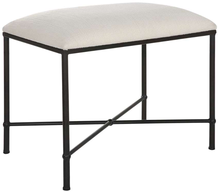 Thoroughly modern yet inspired by the classics, this small bench displays a stylish black and white look featuring an iron frame in a satin finish, upholstered in a crisp white textured fabric.Read More