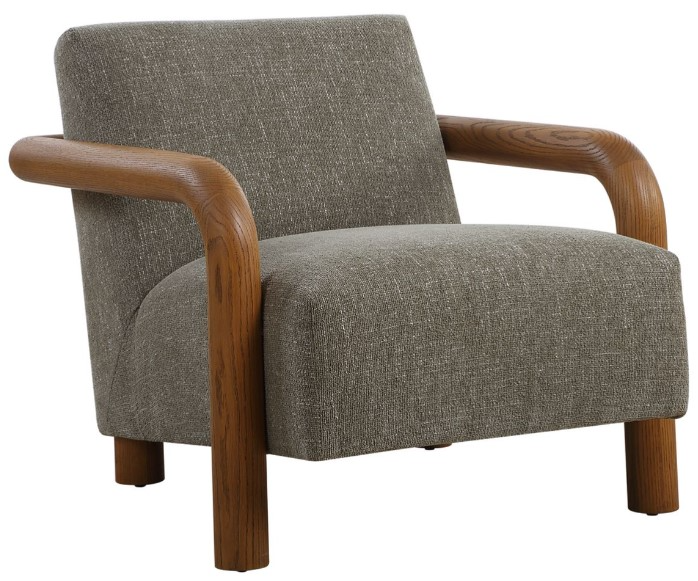 Sturdy curved oak arms are the focal point of the Balance accent chair. Finished in a natural warm stain paired with a comfortable floating seat upholstered in a knubby herb green chenille.Read More