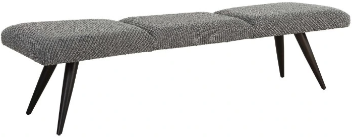 A classic bowtie shape is accentuated by the directional stripes of the polyester boucle fabric in charcoal and slate gray tones. Paired with tapered metal legs in bronze. The sturdy construction and sophisticated look make it a valuable addition to any decor.Read More