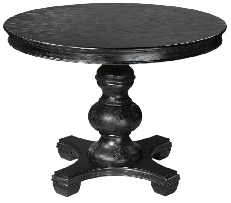 An elegant entryway table or small dining table, featuring detailed moldings and a stylish turned baluster in a satin black finish with subtle pine wood grain.Read More