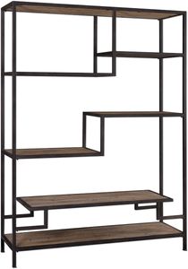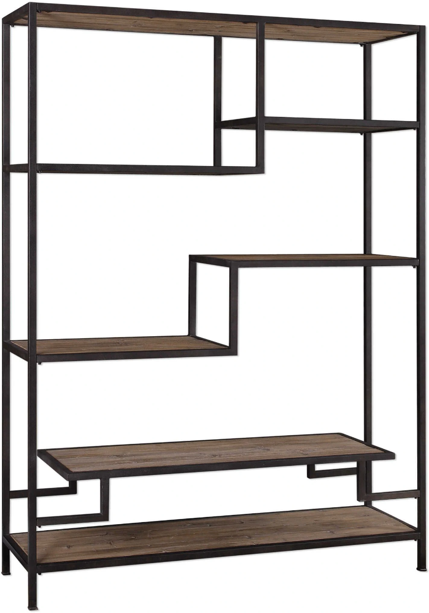 This six-shelf design offers fun display options with staggered multi-level shelving using reclaimed pine framed in iron with an aged black finish. Solid wood will continue to move with temperature and humidity changes, which can result in small cracks and uneven surfaces, adding to its authenticity and character.Read More