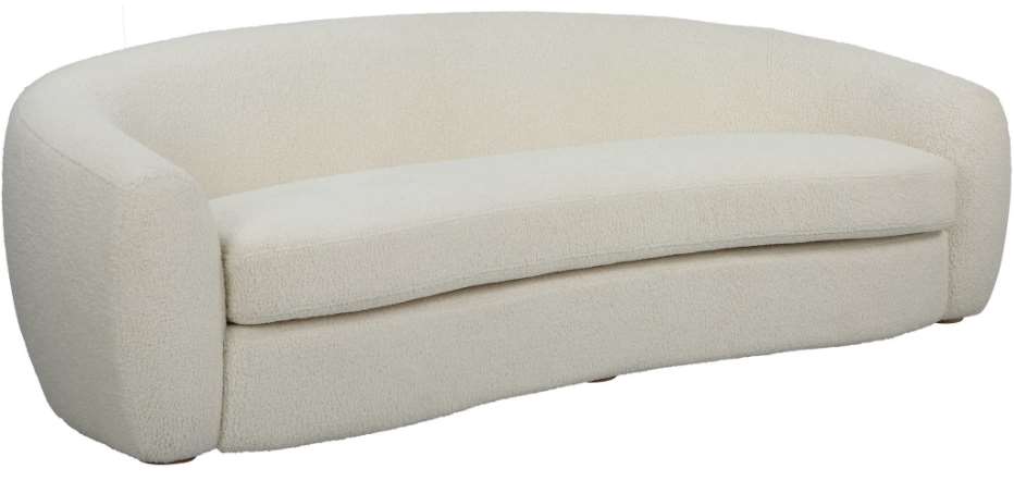 The Capra Sofa draws inspiration from old Hollywood glamour and the Art Deco movement with a contemporary twist. The curved silhouette maximizes style and comfort with luxe off-white faux shearling. Rounded bun feet are finished in natural oak.Read More