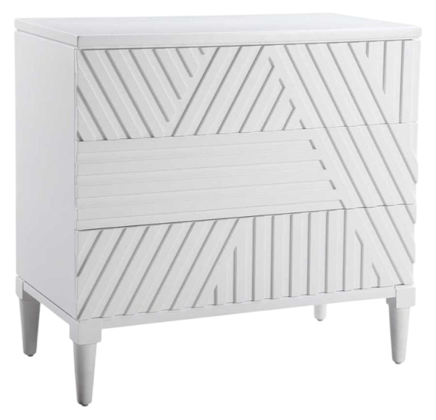 Refreshingly modern, this geometric accent chest features carved drawer fronts, creating a monochromatic statement in a crisp white finish.