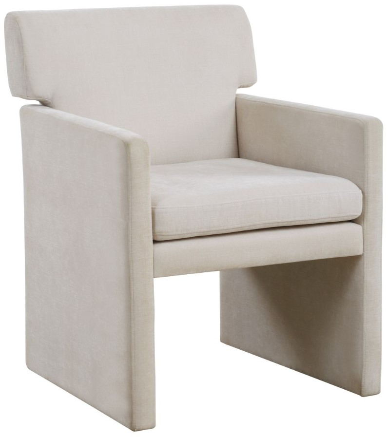 An elegant and clean-lined dining chair, perfect used as the host and hostess seat, featuring an elevated back design. Fully upholstered in an ivory polyester velvet with a crosshatched texturing.Read More